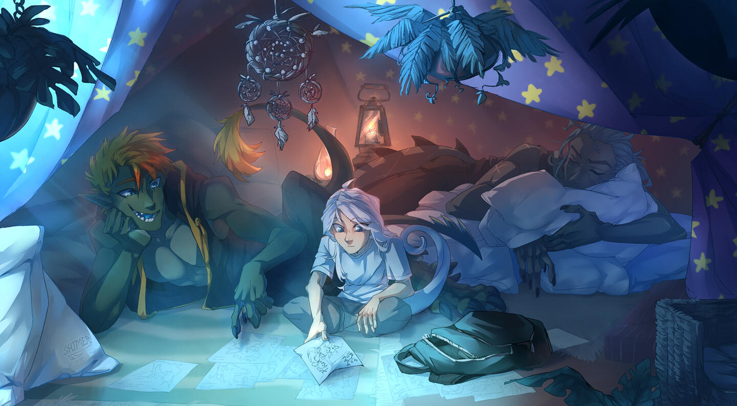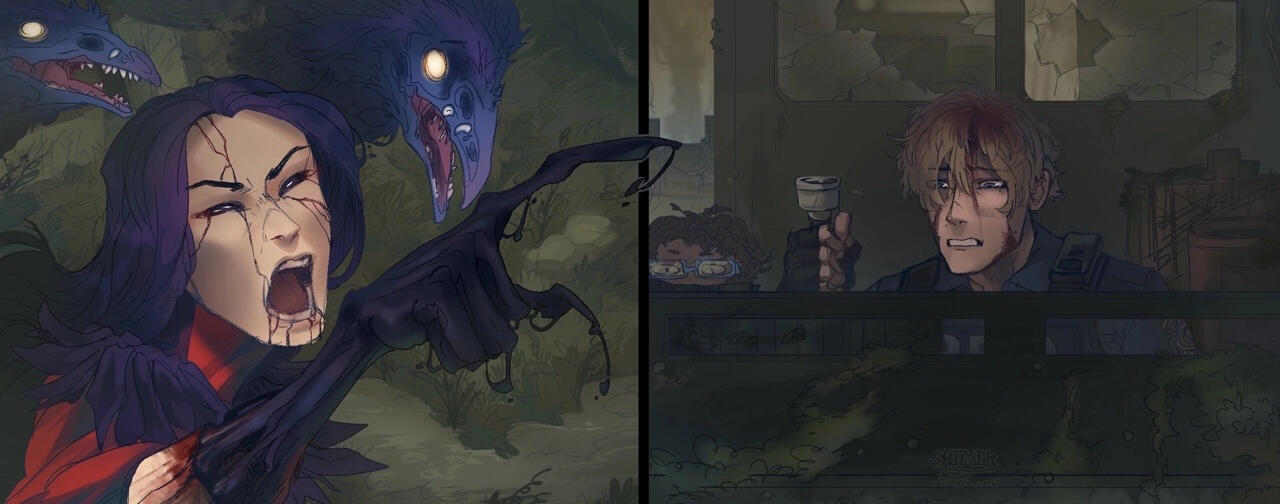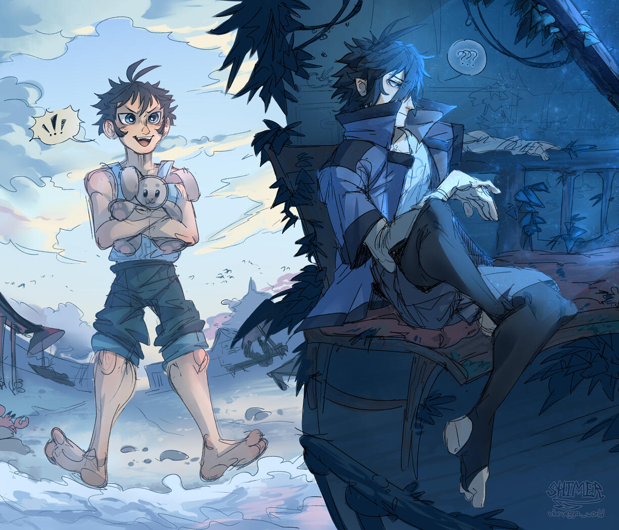 (рваные линии, базовые тени, освещение)